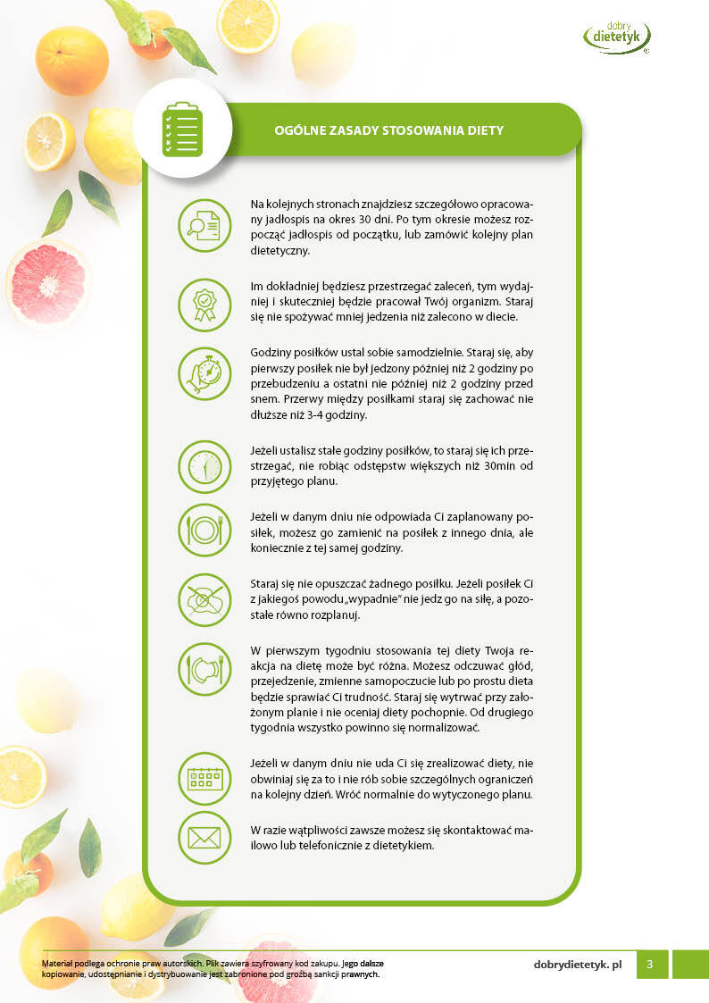 Obok szczegółowego planu dietetycznego otrzymasz również praktyczny poradnik korzystania z opracowanego planu dietetycznego.